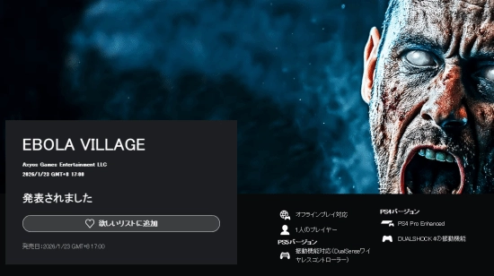 不过,最新消息显示,索尼已从YouTube永久下架了《Ebola Village》的相关视频。值得注意的是,该游戏在PlayStation商店的页面依旧正常展示,发售日期也仍标注为1月23日,由此可见这款作品目前似乎仍计划按原定时间推出。