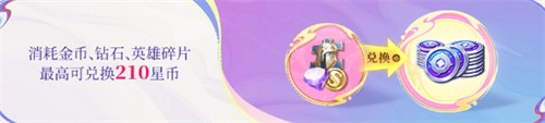 2、活动内容:消耗金币、钻石、英雄碎片,最高可兑换210星币
