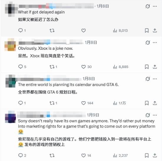 玩家群体中开始出现对《GTA6》可能再次跳票的担忧,部分观点还将这种担忧与Xbox阵营的竞争态势联系起来,甚至有人调侃称“全世界的日程安排似乎都在围着《GTA6》转”。