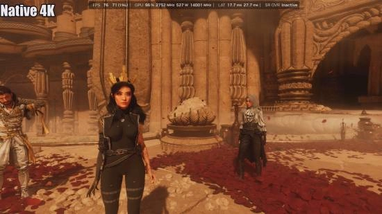 视频画面中,植被、发丝等各类细节呈现得更为清晰,整体视觉效果甚至优于原生4K。尽管反射区域存在些许噪点,但二代Transformer模型的性能依旧让人惊叹。相比之下,AMD要在画质表现上达到相近水平,还需付出大量努力奋起直追。
