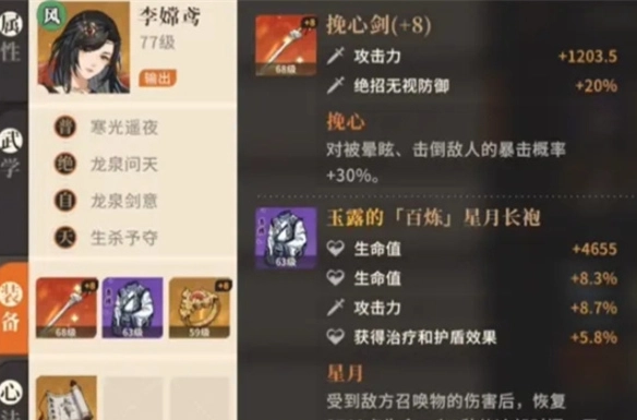 心法属性:暴击率>攻击百分比>爆伤>其他