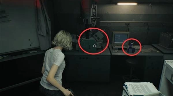 使用激光显微镜对旁边的紫色血液样本进行分析,仅需一步激活所有原子,即可解锁手枪弹药与溶血注射器的合成配方。
