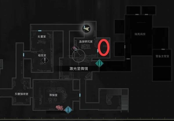 进入血液研究室后,在桌上找到【采血器】,用它采集各处的感染血液能用于合成物品。现在地图上已自动标记出所有感染血液的位置,不用担心暂时不拾取会消失,随着探索推进,这些血液会逐渐被你消耗完。