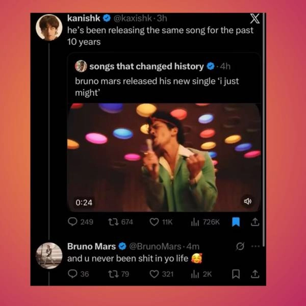 昨天,火星哥布鲁诺·马尔斯直接回怼了一位粉丝,该粉丝称他“过去十年发布的音乐风格都一成不变”。