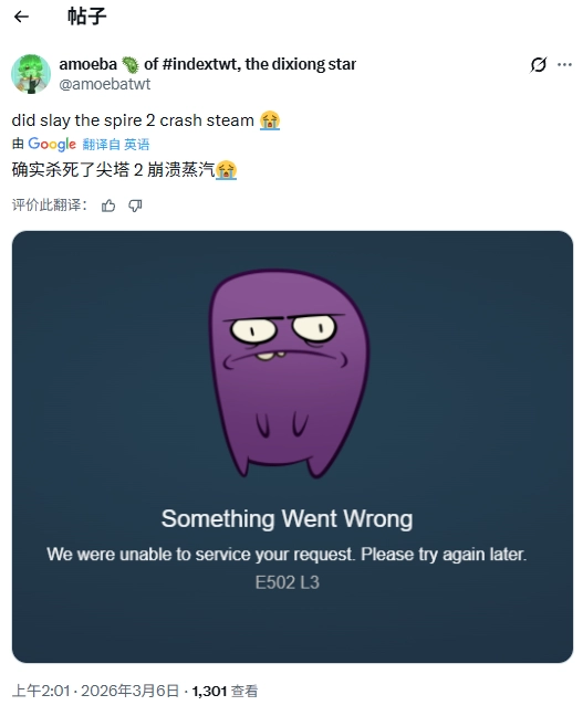 结果和《空洞骑士:丝之歌》之前引发的状况类似,《杀戮尖塔2》周四上线时,大批玩家同时涌入下载,一度导致Steam商店系统出现拥堵。部分玩家在进入商店页面或完成购买时遇到卡顿和延迟,不过这些问题在大约半小时后慢慢恢复了正常。