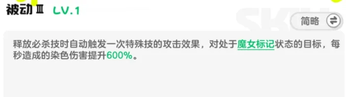 特殊技是对周围至多3个目标造成伤害并施加持续15秒的魔女标记。