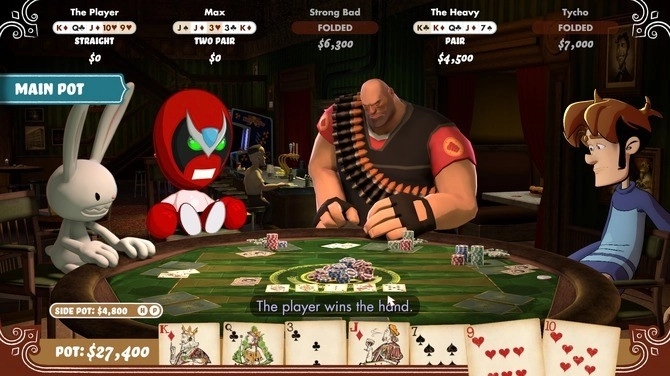 《扑克之夜》(也叫怪诞扑克夜、搞怪扑克之夜)是Telltale Games在2010年11月22日推出的休闲向德州扑克游戏,主要适配PC平台。这款游戏的核心玩法是跨IP角色对战,玩家需要和来自《无主之地2》《军团要塞2》《萨姆和马克斯》、Penny Arcade以及Homestar Runner等不同作品里的虚构角色展开牌局较量。