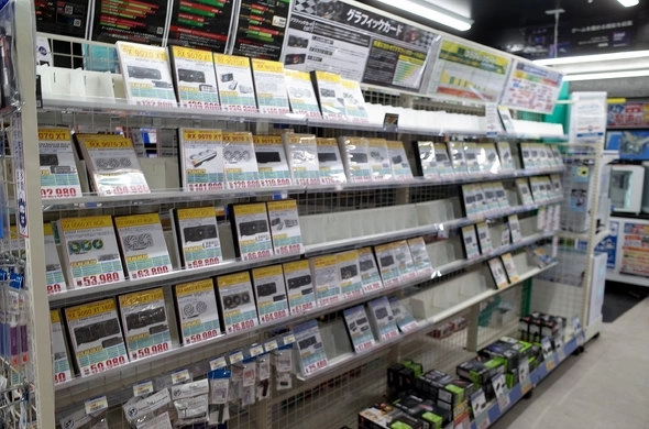 在TSUKUMO eX.店内,高端显卡的缺货情况十分严峻,近半数的展示区域因没有产品可陈列而闲置。“Radeon系列显卡目前还有一定库存,但这或许也只是暂时的情况……”该供应商的代表如此表示。