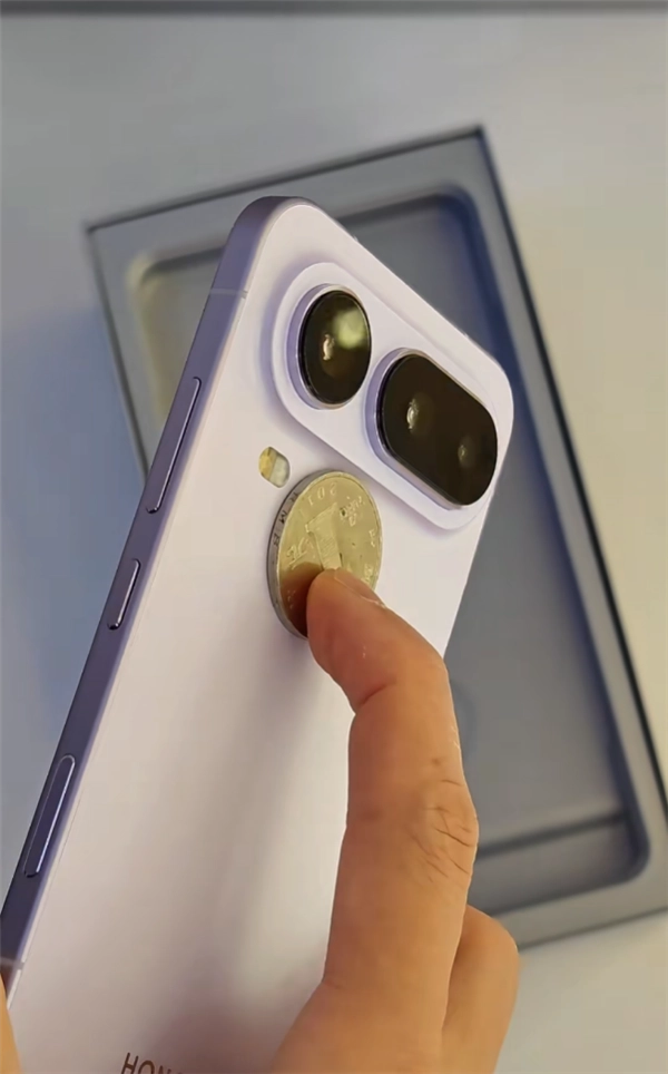 外观方面,荣耀Magic8 Pro Air的后置摄像头Deco沿用了荣耀V20那经典的感叹号造型,整个模组没有明显的凸起感,其厚度大概和一枚1元硬币差不多。