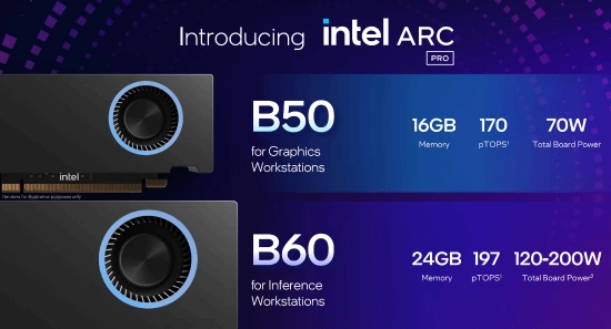 锐炫Pro B50/B60于去年5月发布,归属于Intel第二代专业显卡。