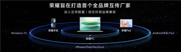 荣耀于去年2月宣布加入互传联盟,旨在打通基于信任环的跨设备兼容体系,并计划成为首个支持全品牌互传的厂商。