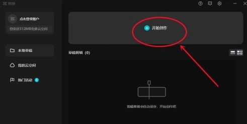 点击“开始创作”选项,即可进入剪映的操作界面(界面示意图如下所示)。