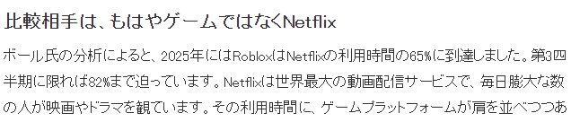 根据数据调查站的报告,到2025年,玩家在罗布乐思上投入的时间已达到全球最大流媒体平台Netflix用户消费时长的65%,这一数据着实令人意外。