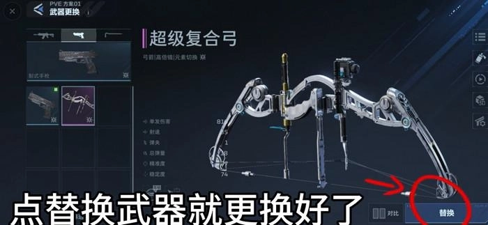 3. 挑选新的武器后,点击右下角的【替换】按钮。