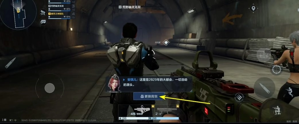 答:死亡复活后(到达商品补给站时也可以),点击像下图展示的【更换背包】按钮就能随意切换1到6号背包;