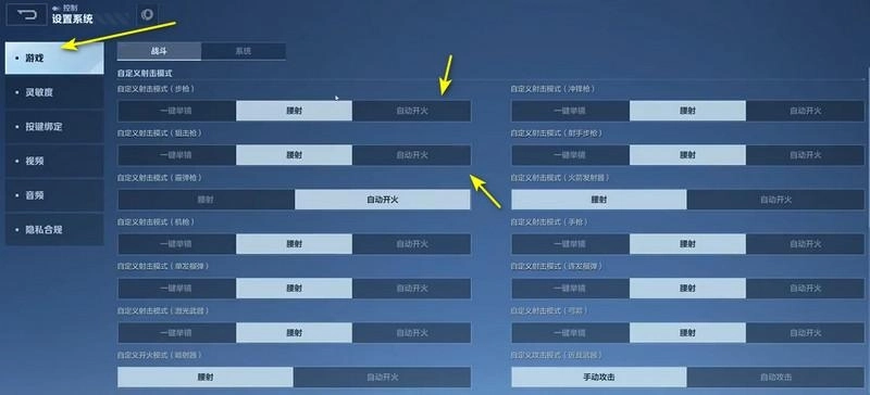 4、建议所有枪械都设置为自动开火模式,投掷物与近战武器则选择手动攻击模式。