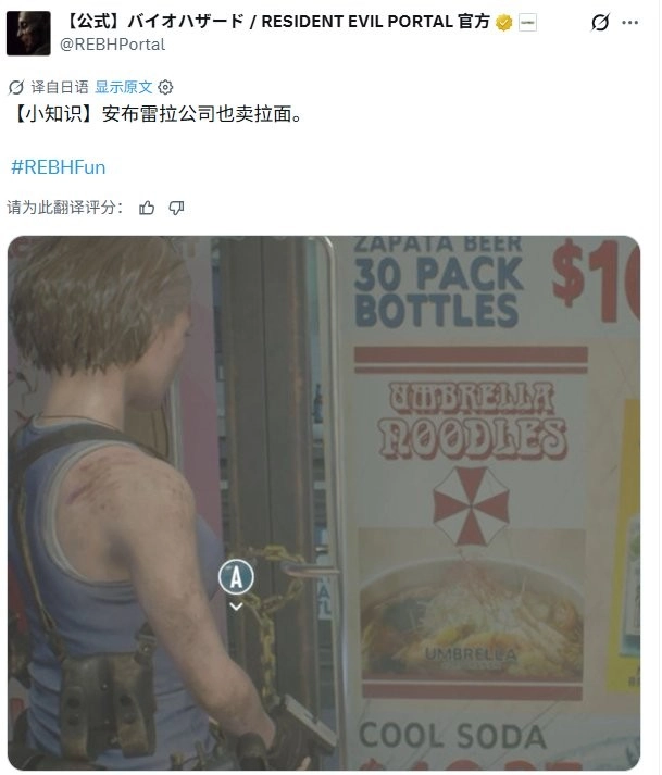 在新作上市前夕,《生化危机》的官方社交媒体发布了一段标注为“保护伞公司紧急声明"的视频。这家虚构的制药巨头以极度严肃的口吻向公众宣布,已向浣熊市最高法院对现实中的食品公司日清食品提起诉,指控该食品商公然侵犯其知识产权,非法复制了其热门产品"保护伞方便面"。