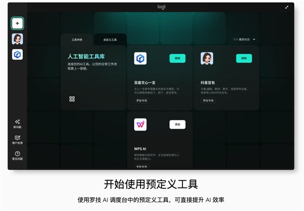 还有罗技 AI 调度台,整合了豆包、DeepSeek 各家 AI 助手。