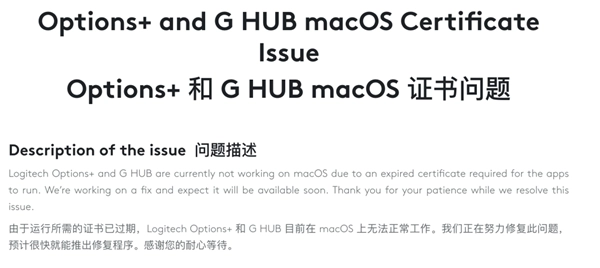 一旦你忘了续期,证书过期后系统直接不认你了,罗技驱动就没法正常工作。