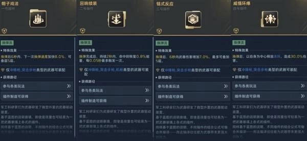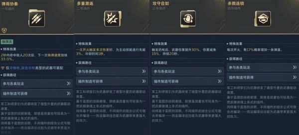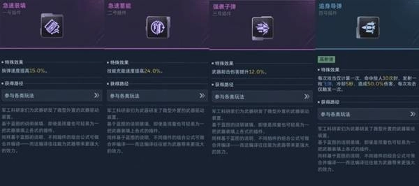 前期如无法高效获取金色品质插件,可先用紫色插件过渡,重点提升“换弹速度”和“射击伤害”。