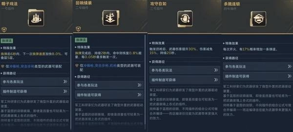 3号插件“攻守自如”,触发扔枪效果后,能获得30%的武器伤害加成与15%的伤害减免,持续时长20秒,该效果的覆盖范围基本全面。