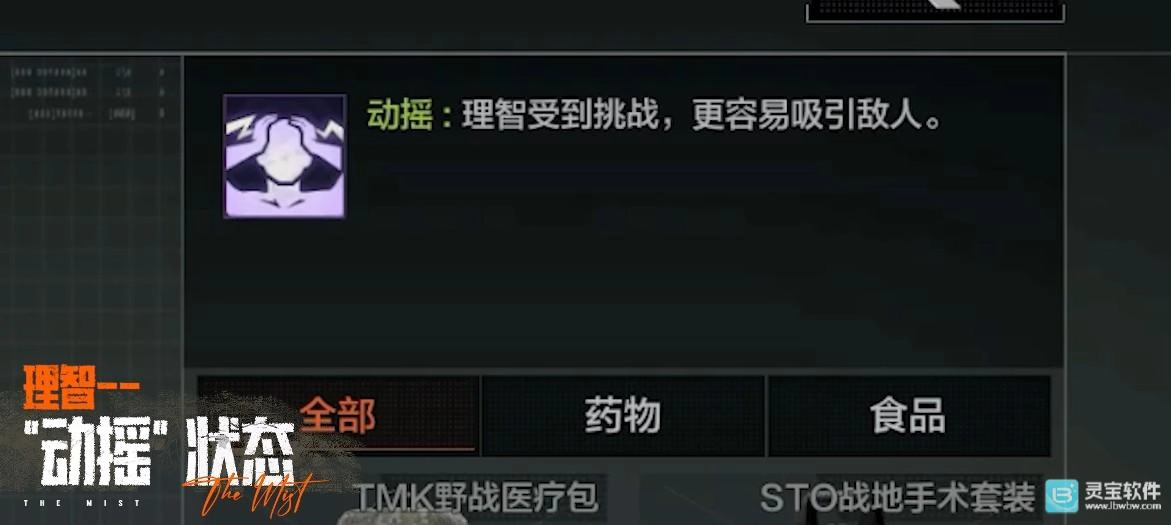 动摇:你的理智开始被侵蚀,耐力会恢复到正常状态,游荡者和怪物会更容易察觉并攻击你;随机的幻听现象也随之出现。