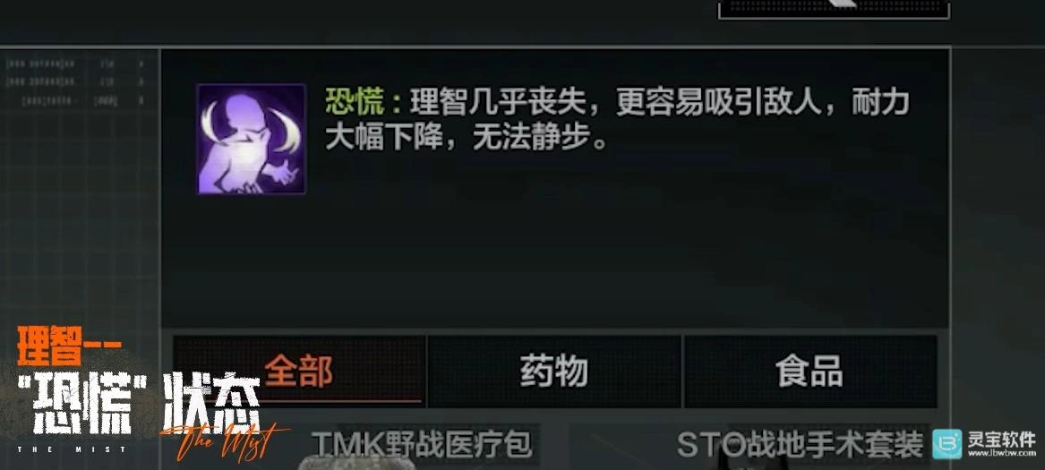 当你理智濒临耗尽时,务必立刻撤离异常区域——这是针对“恐慌”状态的紧急警示:一旦陷入此状态,你的耐力上限会大幅降低,回复速度显著减慢,消耗却更快,且无法保持静步;幻听会变得更加频繁,幻觉也会随之袭来。更危险的是,周围的怪物与游荡者都会被你吸引,让你陷入真正的绝境。