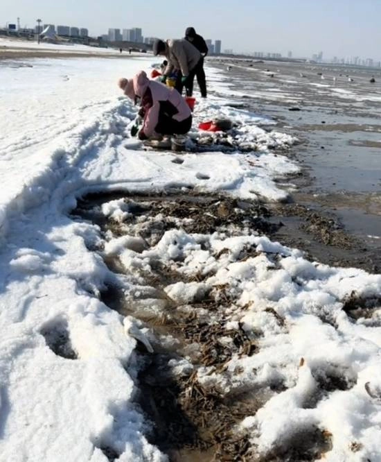 暴雪过后,烟台海边意外出现了免费的“隐藏款”美食,许多市民纷纷来到海边捡拾蛏子。有位市民说道,海滩上一层叠着一层全是蛏子,短短5分钟就能捡满一大桶,数量多得根本捡不完。