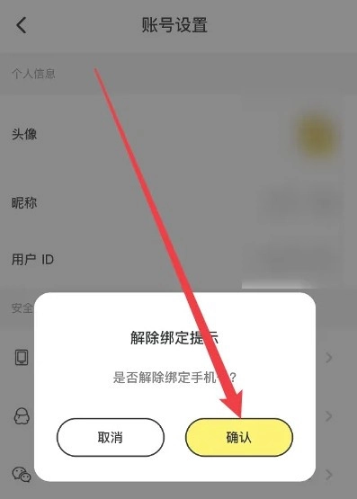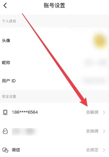 然后在安全设置选项中,点击手机号码后面的“去解绑”按钮。