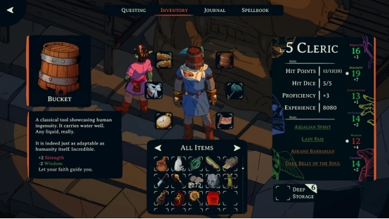 和矮人比试角力、趁人不备顺走东西,乃至防止在大伙面前丢脸——这些全都由一次掷骰子的结果决定。就像真正的桌面角色扮演游戏那样,失败常常比成功更有看头。