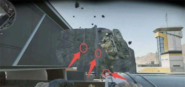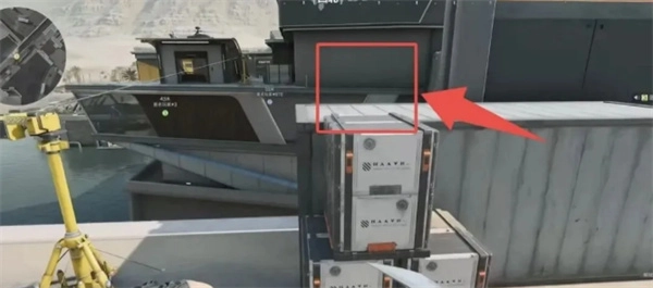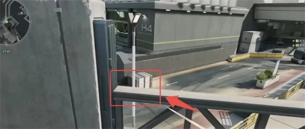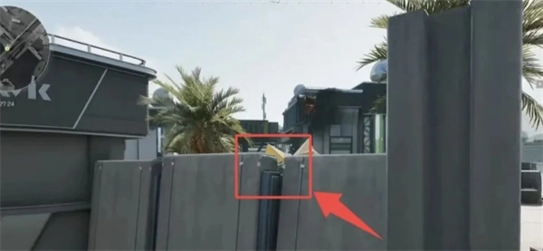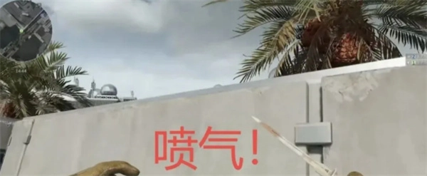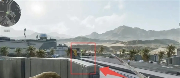 第二步:视角对准下图红圈标记的围墙缺口位置,通过疾跑、大跳再衔接喷气的操作,就能直接卡上去,若一次没成功可以多尝试几次。