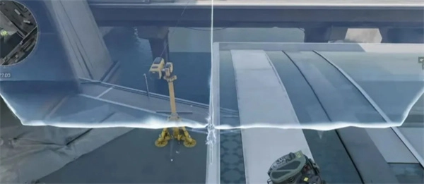 1、第一步:在码头玻璃通道的最顶端,对准最高点释放第一块水泥墙。