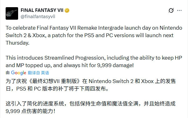 《最终幻想7:重制版》的PS5版本与PC版本,即将新增和Switch 2、Xbox Series X/S版本一致的“简化进度(Streamlined Progression)”功能。