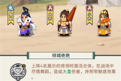 6、倾城绝艳:当貂蝉、黄月英、甄姬、蔡文姬、大乔、小乔、孙尚香、祝融这八位武将中有四位同时上阵时,即可激活该效果。激活后,角色会在战场上翩翩起舞,不仅能造成高额伤害,还会附带魅惑效果。此魅惑效果可扰乱敌方的行动,再搭配上高额的伤害输出,能够有力地打乱敌方的战斗节奏,特别是在应对怒气回复较快的阵容时效果尤为突出,即便面对拥有霸体状态的武将,也能起到不错的克制作用。