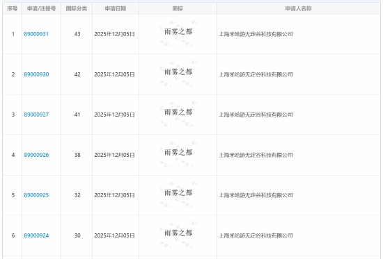 2026年1月15日,有博主留意到,米哈游的子公司近期集中提交了20多个与“雨雾之都”相关的商标申请。外界普遍推测,这或许就是那款采用虚幻引擎5(UE5)打造的重磅IP《Varsapura》所对应的正式中文名称。