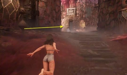 2、传送出来后,往左边走,就能看到一扇木头做的大门,这扇门就是后门!