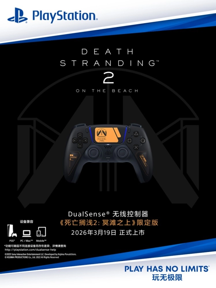 索尼互动娱乐(上海)有限公司(以下简称“索尼互动娱乐”)今日正式宣布,PlayStation多款全新配件将于2026年3月陆续登陆中国大陆市场,以更好地满足玩家多样化的游玩需求。此次推出的配件产品包括:DualSense®无线控制器 -《失落星船:马拉松》限定版,将于3月6日正式上市,建议零售价为人民币639元,预售活动即日起启动;高能流行集锦系列DualSense®无线控制器及PS5™(轻薄版)主机盖计划于3月12日上市,两者建议零售价分别为人民币639元与人民币559元;DualSense®无线控制器 -《死亡搁浅2:冥滩之上》限定版则将于3月12日开启预售,3月19日正式上市,建议零售价为人民币639元。
