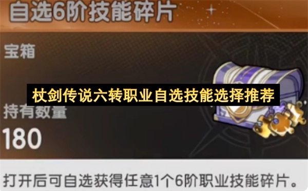 《杖剑传说》的六阶自选技能碎片宝箱打开后,能自主挑选一种六转技能碎片。由于不同职业的强度存在显著差别,所以建议依据职业的定位以及赛季的规划来做出选择。下面小编就为大家带来杖剑传说六转职业自选技能的选择推荐攻略,期望可以对各位有所帮助。