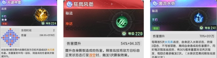 按需选择即可。若追求单体高额伤害,可选择天谴神雷;若优先风系群体伤害,狂岚风劲是不错的选择;若主打水系玩法,建议搭配激流水势(兼具群体伤害与控制效果)。