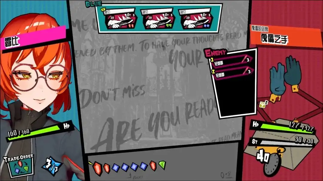游戏战斗摒弃了传统的行动点机制,转而采用每回合随机补充的红、蓝、绿三色宝石,作为释放技能卡牌的消耗资源。这一系统的核心设计在于“连接”逻辑:假设一张卡牌需要消耗红宝石与蓝宝石,而紧随其后的另一张卡牌需求为蓝宝石与绿宝石,那么仅需红、蓝、绿三颗宝石即可连续释放这两张卡牌。玩家通过精心规划卡牌的释放顺序,让前后卡牌的宝石需求在颜色上形成首尾衔接,就能以最少的宝石消耗触发最多的卡牌效果,进而组合出强大的连招。