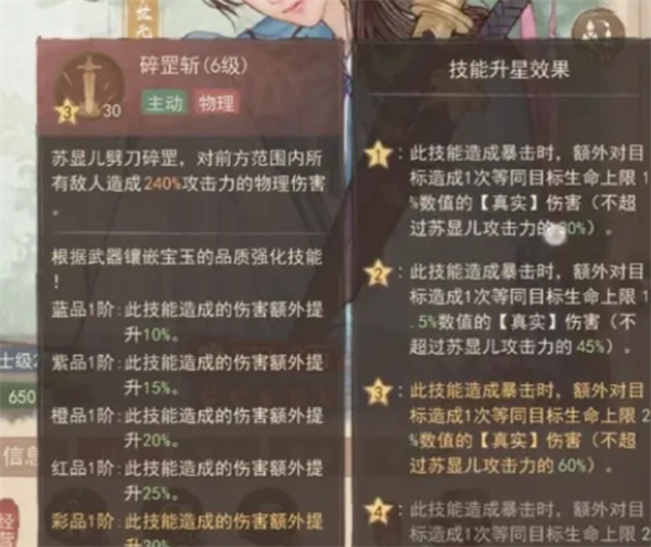 2、无论是推进关卡还是完成日常任务,把这个技能点满后,伤害的提升效果非常明显。前期使用苏显儿这个角色时,优先将兵种技能升满肯定是正确的选择。