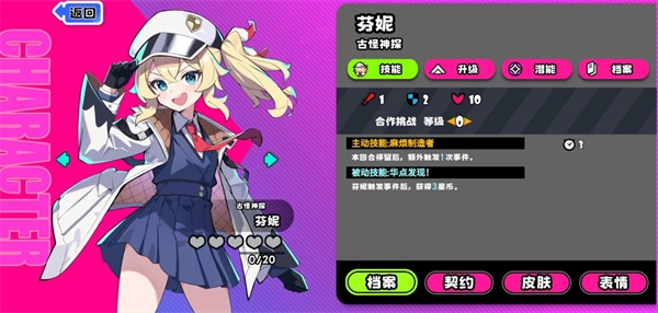 4、当然,仅依靠踩格子来触发事件,不仅效率低下,还会面临各种难以预料的危险状况。此时,能高效且可控地触发事件的角色就成了凛的理想队友,也就是侦探芬妮与毒苹果邦妮。侦探每三回合能无条件触发一次事件,还能从两个选项里挑选更优的那个;邦妮给怪物挂上标记后,若该怪物死亡,便会触发邦妮专属的“隐秘调查”事件。这个事件会随着邦妮标记触发的次数升级,最终能给全场所有非boss怪物,甚至boss都挂上一层标记,和凛的机制可以说是完美契合。