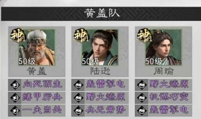 依托这些作用机制,黄盖和陆逊、周瑜这类灼烧系武将搭配起来效果出众。他们三人组合出的灼烧叠加与连锁引爆效果,能够打造出一套高效的战术循环体系。兵种搭配方面,前排推荐部署两支藤甲兵,以此确保黄盖的生存能力;中排安排陆逊与周瑜,为技能释放提供安全的距离保障;后排则可以搭配太平道师这类兵种,来提供持续的辅助支持。