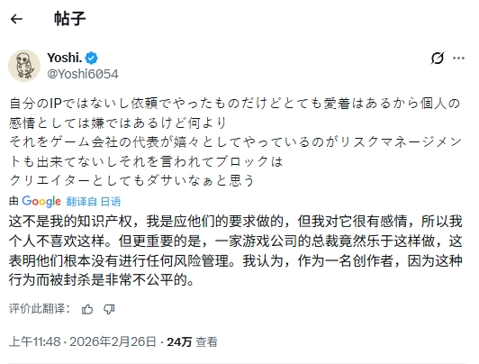 有用户评论说,他觉得金亨泰“完全可以称得上是游戏行业最出色的艺术家之一。他的风格太有辨识度了,一眼就能看出是他的作品。他压根儿不需要依赖AI。这正是我感到不解的地方。真的挺可惜的。”