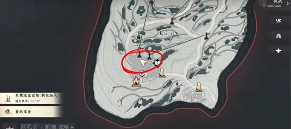 4、收集到足够的烧饼后,前往下图所示的位置,走到篝火旁选择取暖选项,就能烤制烧饼了。