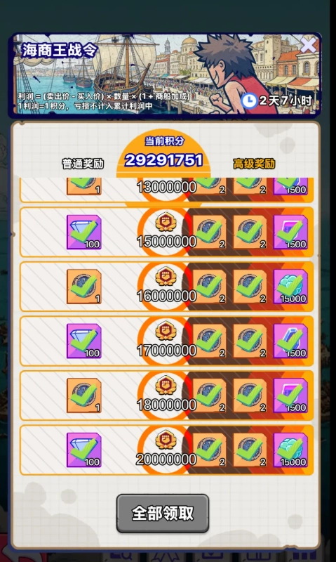 1、用利润资金升级商船,满级5级。