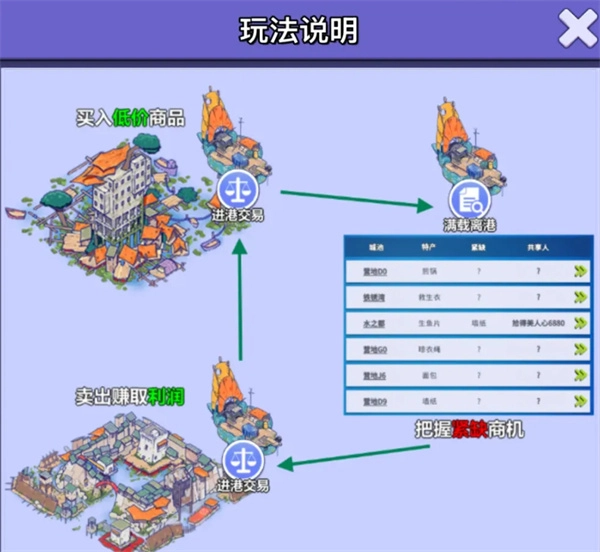 直奔稀缺港口高价抛售(如A港特产货物在B港是稀缺货物)。