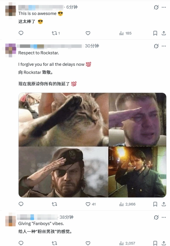 这一事件在社交平台上迅速扩散开来,激起了网友们的热烈讨论。不少网友都对R星的人文关怀表示赞赏,说他们“打破了如同核发射密码般严苛的保密协议”,还祝愿这位粉丝可以好好享受游戏带来的乐趣。当然也有一些急性子的网友开玩笑道“希望他能透露点实际游戏画面”。