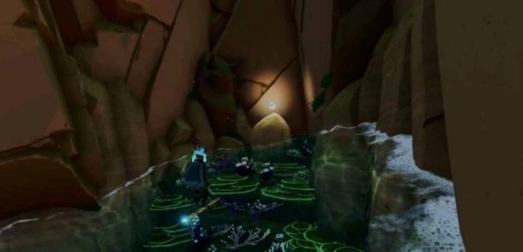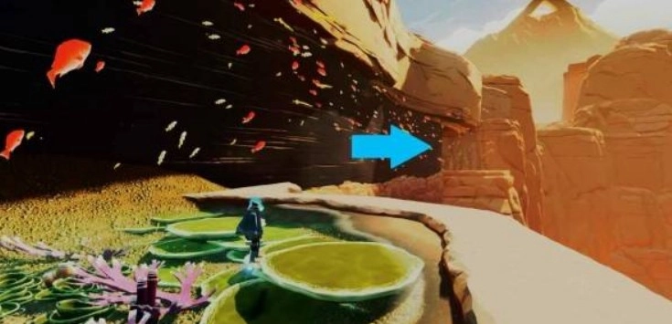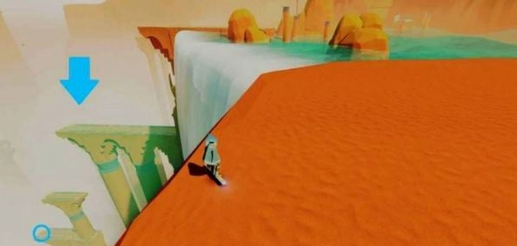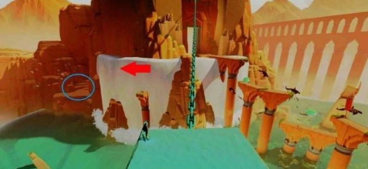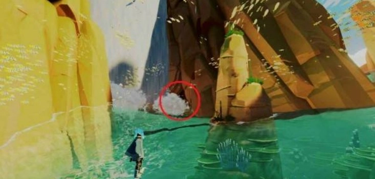激活主水源点并解开右侧的锁链后,绕到建筑的后方,通过海草的助力跳跃登上瀑布。抵达瀑布顶端后,顺着右侧的悬崖小路往前走,一直到能看到悬崖边的石头小径为止。