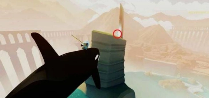 激活主水源点并解开左侧的锁链后,前往商人所在建筑的顶部。贝壳在左侧雕像的顶端,骑上附近的虎鲸跳跃就能登上雕像并拿到它。